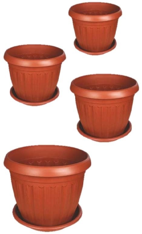 أصيص زراعة بلاستيكي دائري تقليدي مع طبق تصريف