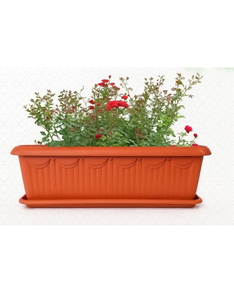 أضف السحر والحياة النابضة بالحيوية إلى شرفتك، أو نافذتك، أو حديقتك مع أصيص الزراعة المستطيل الجميل. صُمم هذا الأصيص من بلاستيك متين، ويتميز بلون طيني جذاب ونمط زهري فريد على شكل صدفة حول حافته العلوية، مما يضيف لمسة من الأناقة الكلاسيكية إلى أي مكان. يكتمل تصميمه بشكل مثالي بالزهور الحمراء المورقة، كما يتضح في الصورة، مما يُظهر قدرته على إنشاء عروض مذهلة.