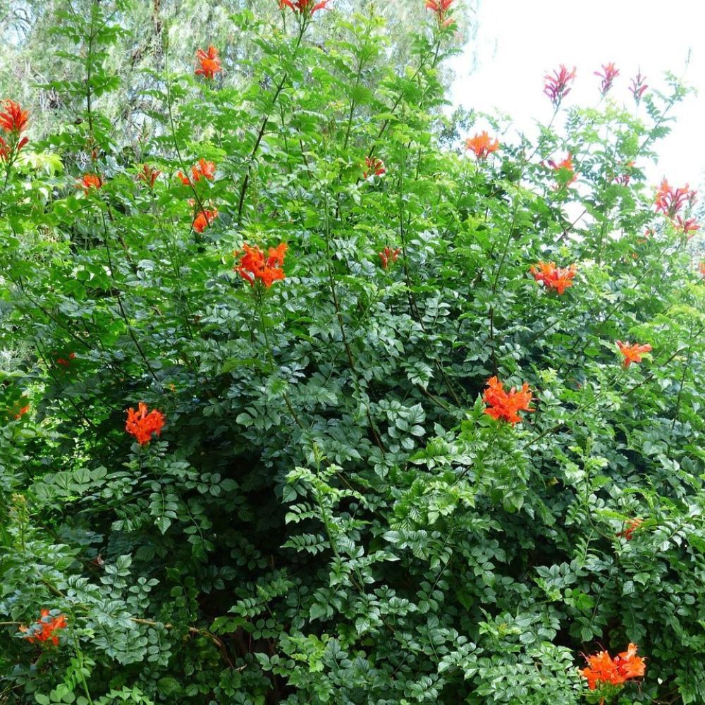 • أزهار جذابة: تتميز بأزهار أنبوبية زاهية بالألوان البرتقالية والصفراء، تنمو في عناقيد رائعة وتعد مغناطيسًا للطيور والنحل، ما يخلق أجواء مفعمة بالحياة.